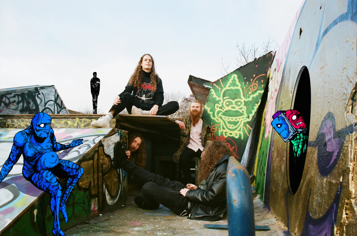 During one of my regular sifts of the dregs of Bandcamp’s recent releases section in early April, my eyes immediately locked onto the slurry of vibrant colors exuding from the artwork of Famine, Putrid and Fucking Endless, the debut LP from London’s Atvm. A robot getting its dome sliced off, a gangrenous totem wincing as it appears to sink into a maroon substance, or the Master Hand-like mitts making peculiar gestures. It didn’t scream death metal at me, but once the twanging bassline protruded from “Picture of Decay” (the sample track available at the time) and then crumpled under the incursion of trem-flaying barbs, I knew this was one to circle back to. And wouldn’t you know it, the entirety of this 56-minute mammoth of an opus continues to enthrall me all of these months later.